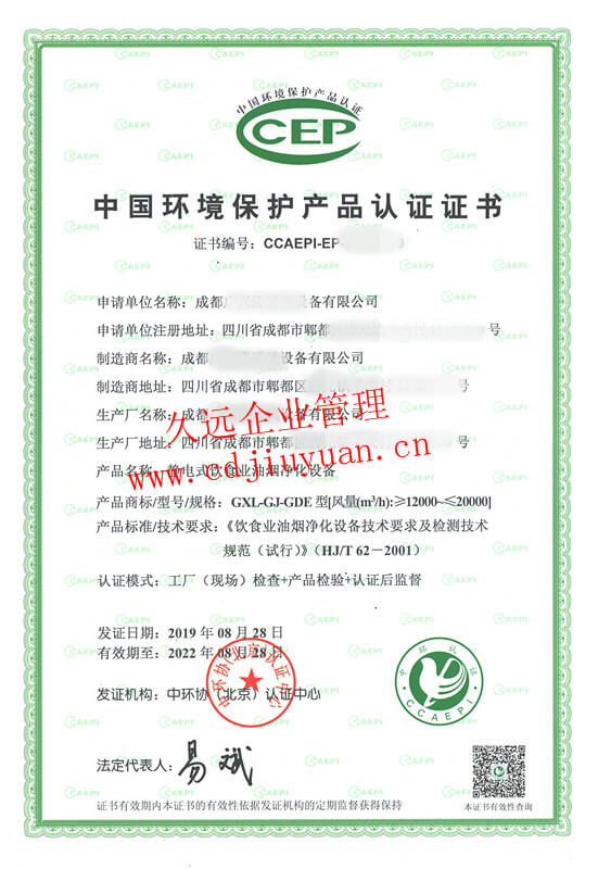 中國環(huán)境保護(hù)產(chǎn)品認(rèn)證證書